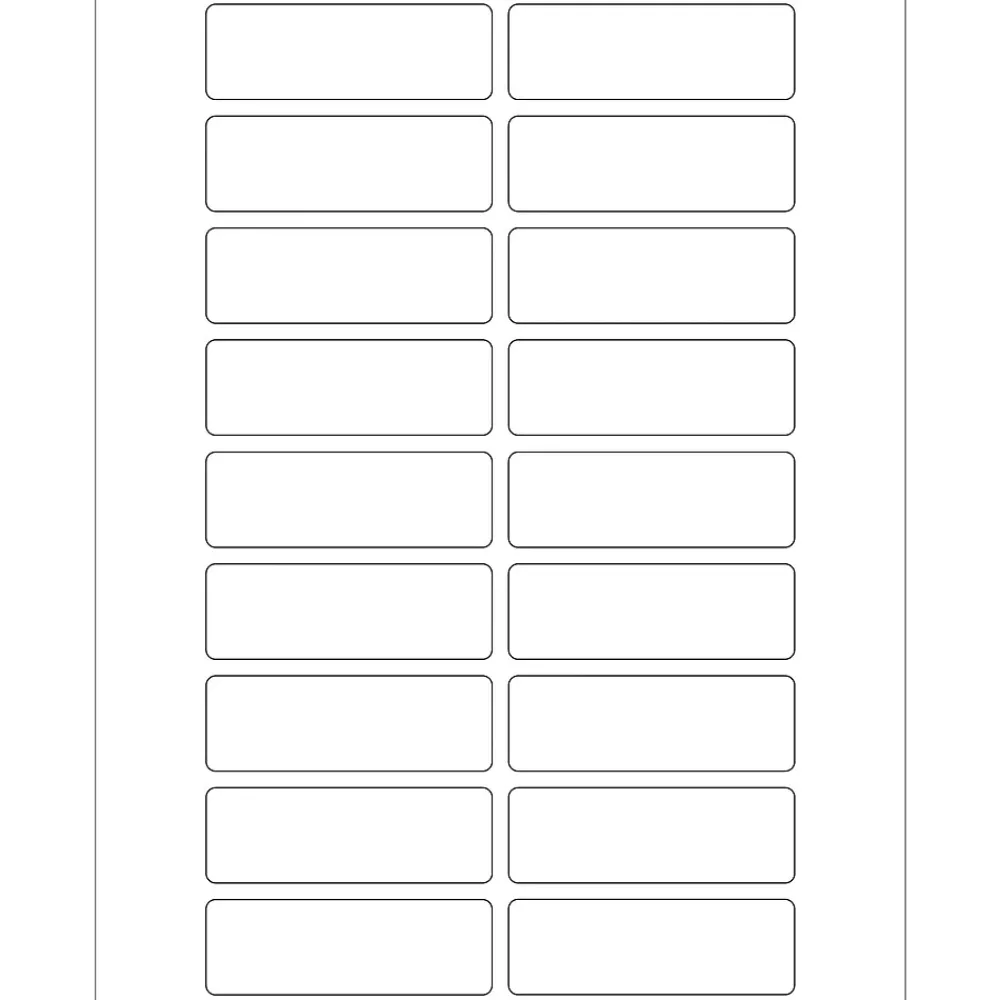 3 x 1″ White Rectangle Laser Labels. Use to create your own product or mailing labels. Labels work with both laser and ink jet printers. Permanent adhesive. Labels stick to a variety of smooth surfaces including paper, corrugated, plastic, wood, glass and metal.