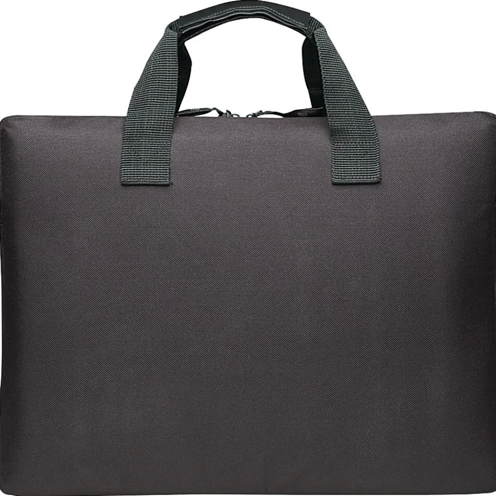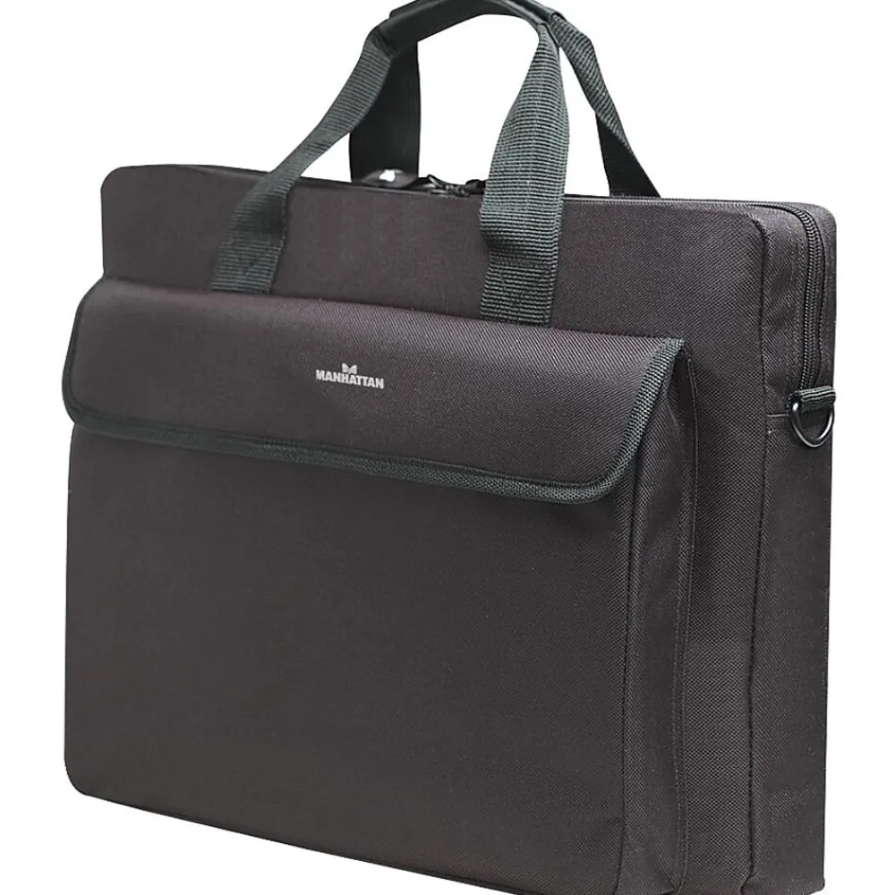 Manhattan® 15.6″ London notebook computer briefcase includes strong dual strap handles, nonslip shoulder strap for easy transportation. Briefcase is lightweight, water resistant, durable and enables a quick packing with its top-load configuration.