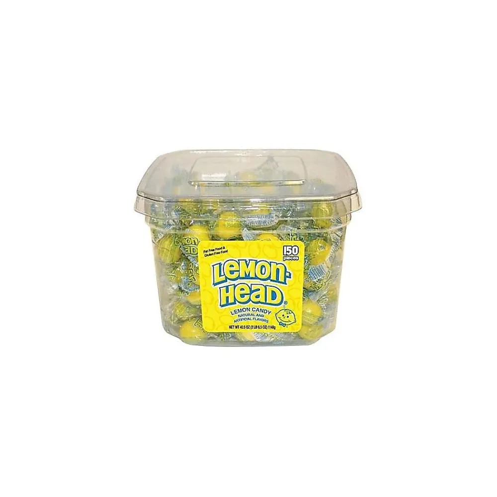 Indulge in the nostalgia of this office-sized tub of lemon-flavored hard candies. These convenient, individually-wrapped candies are fat-free, gluten-free, and kosher to accommodate restricted diets. With a sweet-and-sour taste, the Lemonheads in this 150-piece tub are a great choice for office lobbies, cafeterias, break rooms, and personal candy bowls.