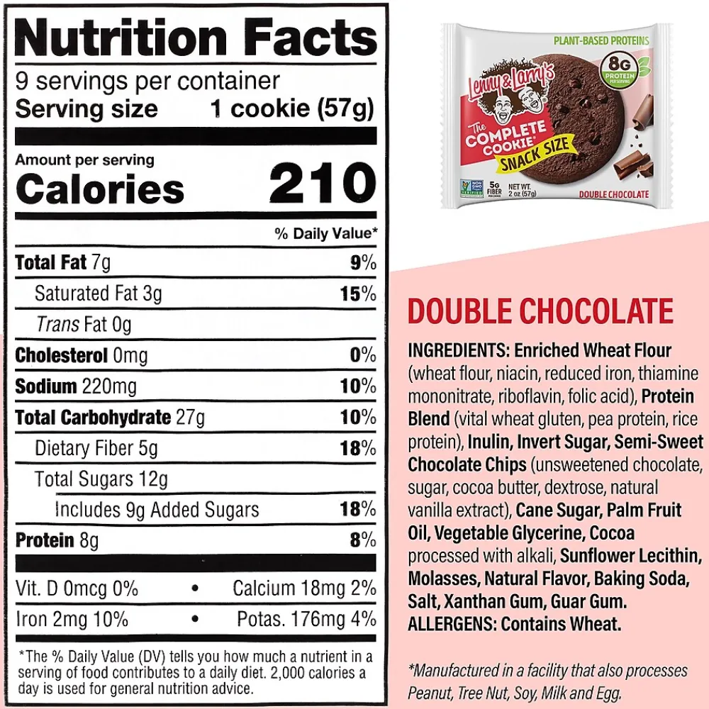 - 18 inividully wrapped cookies, 9 chocolate chip and 9 double chocolate