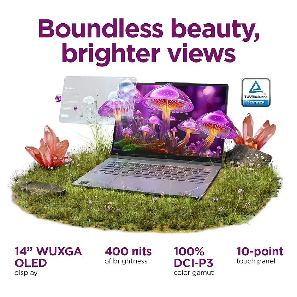 - Discover vibrant clarity with the 14” OLED display. Its taller 16:10 ratio offers boundless viewing, ensuring more content on screen to do things like immerse yourself in e-books, where every word pops and enhances your learning experience. With 400-nit brightness, and 100% DCI-P3, colors transform tasks and entertainment bringing every detail to life.