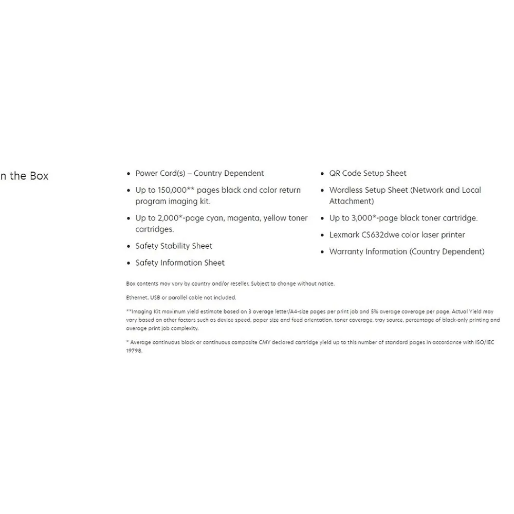 With great performance and secure design, the CS632dwe printer delivers enhanced productivity, 42 pages per minute and toner yields 20,000 pages mono, and 11,700 pages color. Fast time to print, superior print quality and easy-to-use touch screen.