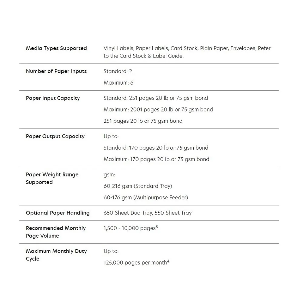 - Monthly Duty Cycle (max): 125000 pages
