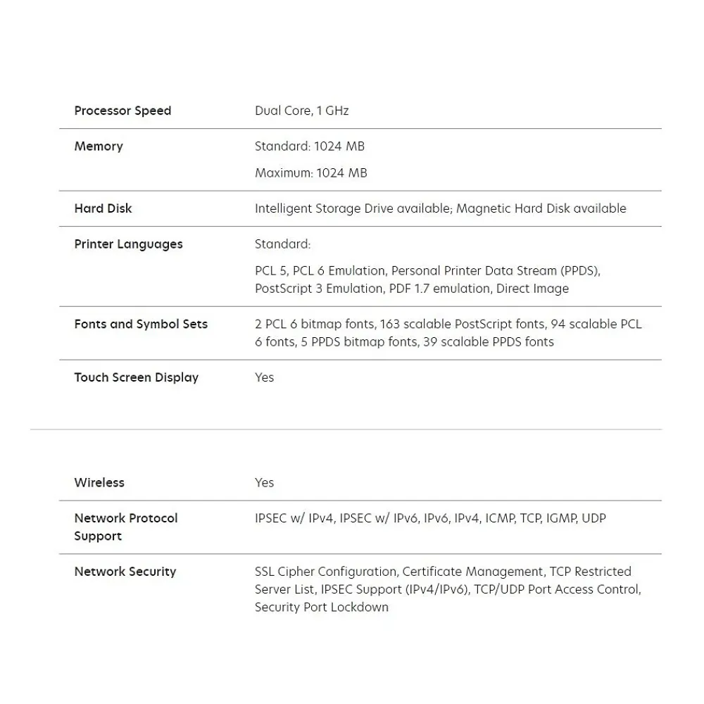 - Duplex (2-sided) Printing: Integrated Duplex