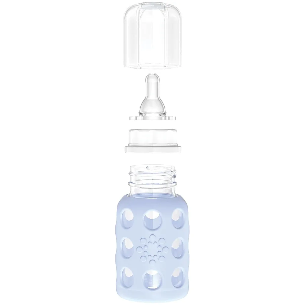 The Lifefactory Mint/Blanket/Blueberry/Kale 4-Glass Baby Bottle Starter Set makes for a beautiful gift for new and expectant moms. They’re ideal for baby showers and they’re easy to wrap. It’s a great way to ensure baby gets off to a healthy start. These baby bottles are made of the highest quality, thermal shock-resistant borosilicate glass. This allows these bottles to transition safely from freezer to boiling water. The 4-Bottle Starter Set includes: two 4 oz. glass baby bottles, two 9 oz. glass baby bottles, 2 flat caps, 2 sippy caps, and 2 silicone nipples. The 4 oz. bottles come with Stage 1 nipples, and the 9 oz. bottles come with Stage 2 nipples.
