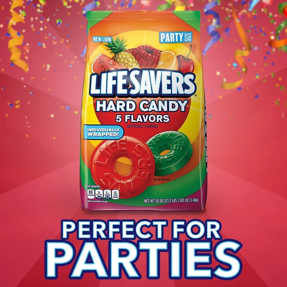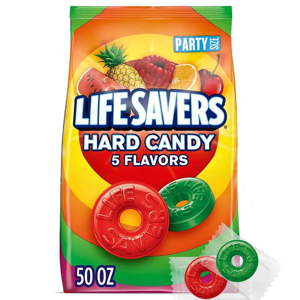 - Contains one (1) 50-ounce party size bag of LIFE SAVERS 5 Flavor Hard Candy
