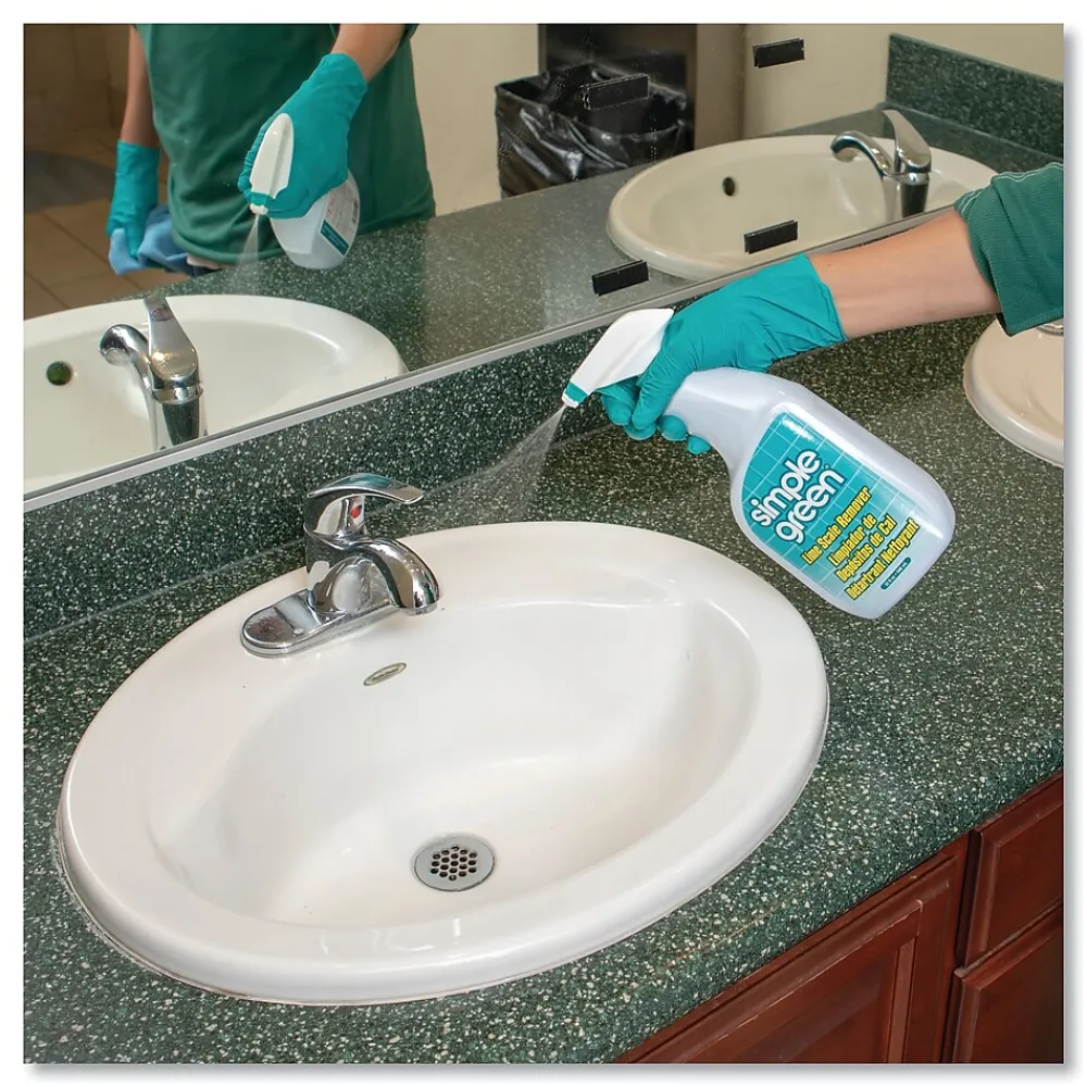 Simple Green Lime Scale Remover uses an organic salt formula to dissolve lime scale, mineral deposits, hard water stains, soap scum and oxidation. The non-abrasive formula won’t strip protective finishes, cause discoloration, etch or damage sensitive surfaces like other harsh descalers.