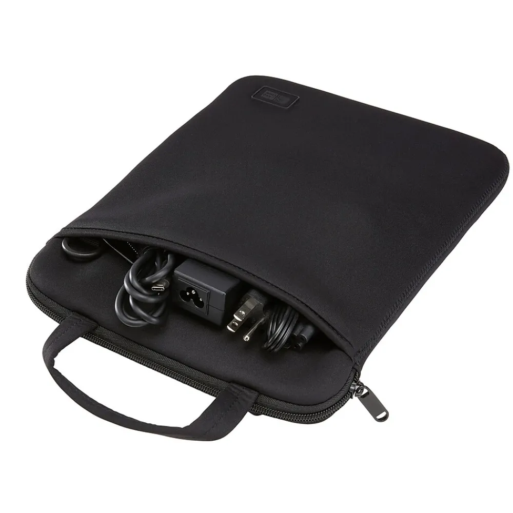 - Durable neoprene sleeve cushions and protects your laptop