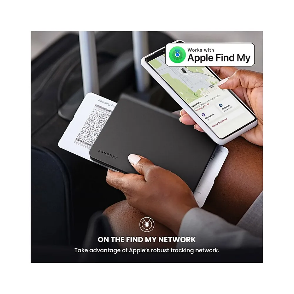 The JOURNEY LOC8 passport holder with tracker is your ticket to stress-free travel. With a built-in tracker compatible with Apple’s Find My network, your passport is always within reach. Never worry about misplacing it again. Slim and stylish, this passport holder securely holds up to two passports, multiple boarding passes, five credit cards, and even has a pocket for your cash. Elevate your journey with peace of mind and practicality, a perfect companion for the modern traveler.