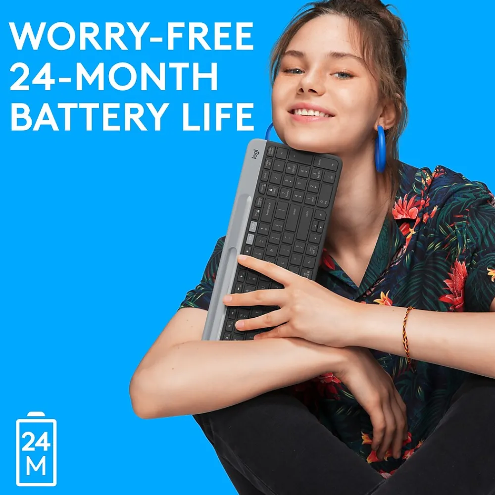 - WORRY-FREE BATTERY LIFE: Enjoy 24-month battery life* thanks to an auto-sleep feature that kicks in when you’re not typing for a worry-free experience.