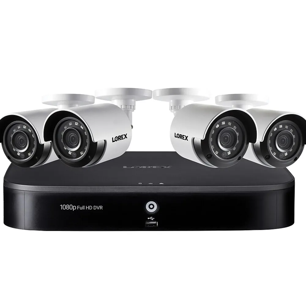 Protect the people and things that matter most with this 1080p HD home security system from Lorex. This wired surveillance system features an 8-channel DVR and four 1080p HD weatherproof bullet security cameras. This system also features advanced person/vehicle detection and smart home compatibility, which allows you to combine active security with the convenience of hands-free voice control. You can even expand your system by adding up to 4 additional cameras (sold separately).