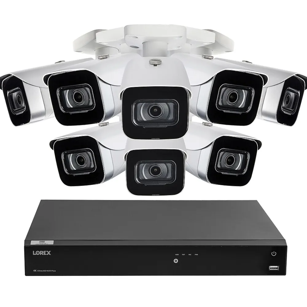Prevent events, capture important moments, and stay connected to your property with this Lorex Fusion NVR system. The security system features eight 4K IP security cameras and a Fusion NVR. The NVR not only connects the 8 included cameras but can also be expanded to connect up to 8 more compatible Lorex Wi-Fi cameras and video doorbells. This surveillance system is the ideal place to start for any home or small business.