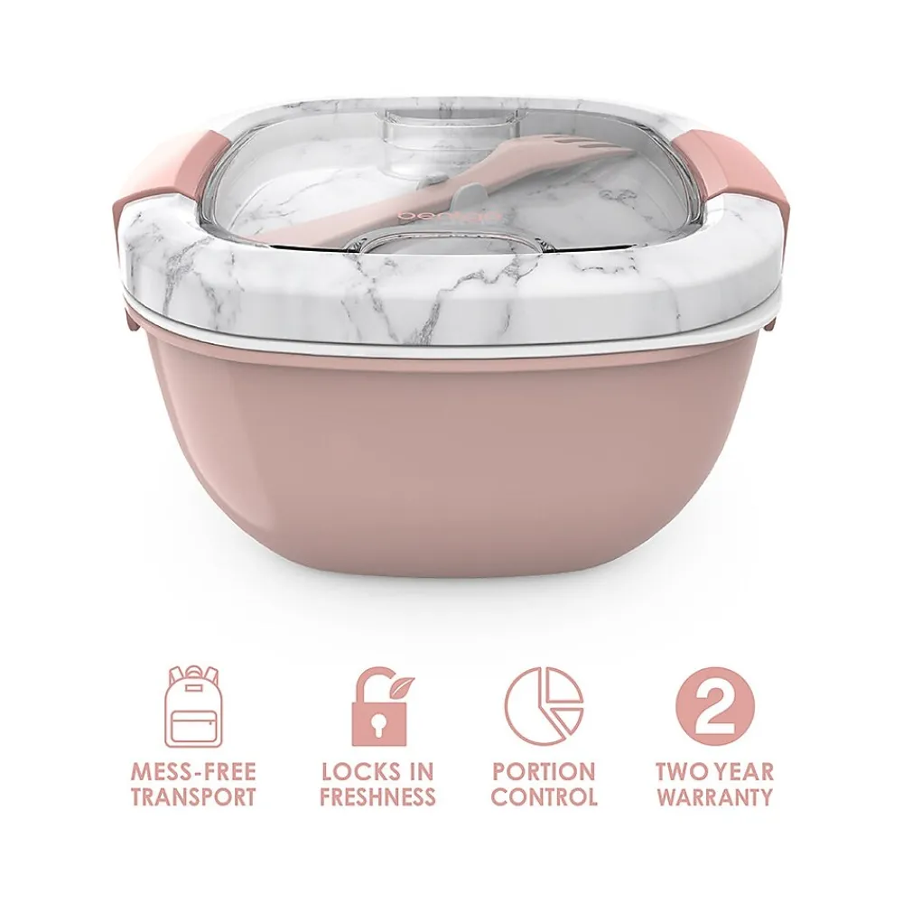 The bentgo Salad all-in-one salad container makes eating fresh and healthy salads while on the go easier than ever. The all-in-one design offers a perfect solution for mess-free transport of your greens, salad toppings, and salad dressing, so you can enjoy a delicious and nutritious salad at school, at work, on a plane, at the park, or just about anywhere. All the components of the bentgo Salad container stack conveniently inside the large salad bowl for easy portability.