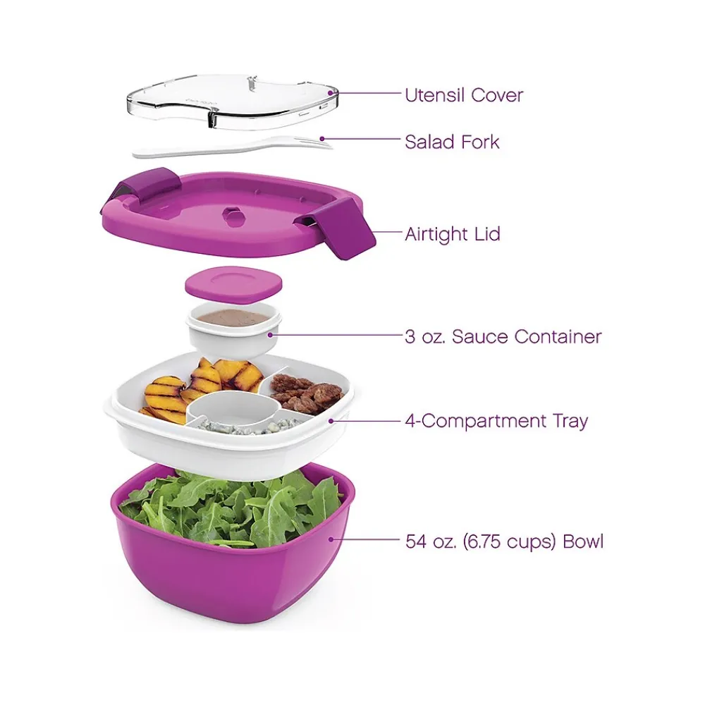 - Salad bowl capacity: 54 oz.; sauce container capacity: 3 oz.