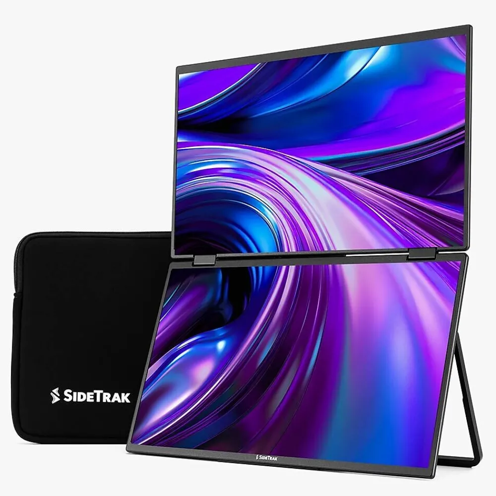Effortlessly triple the screens of any laptop while minimizing your physical workspace with the SideTrak Solo Book, enabling enhanced comfort and efficiency from wherever you choose to work. With an ergonomic, vertically stacked dual-screen design, you can reduce neck and eye strain and enhance your workflow efficiency while saving valuable desk space. Adaptive and versatile, the Solo Book also features 315-degree rotation for a comfortable viewing experience and easy collaboration. Designed to be effortlessly stowed in your bag, the SideTrak Solo Book includes a hinge that allows you to fold the monitor flat and a neoprene protective sleeve to keep your monitor safe when traveling.