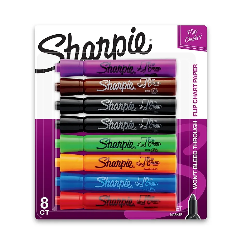 Improve visibility on your flip chart using these colorful markers, which come in eight bright colors. These low-odor markers feature a bullet tip that doesn’t squeak when you write, minimizing disruptions, and lets you write with a smooth, consistent line every time. Thanks to the water-based ink, these Sharpie flip chart markers don’t bleed through the paper, giving you a clean copy.