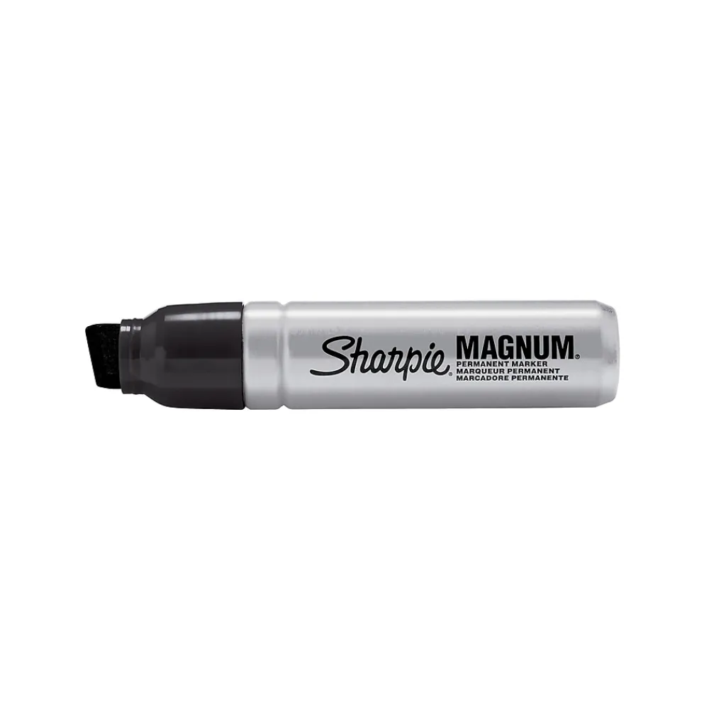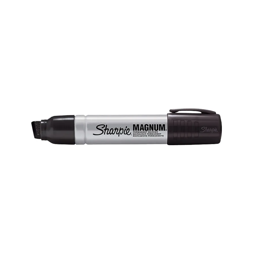 Mark equipment, materials and other items with this 72-count carton of chisel-tip markers. These markers work well on wet, greasy, oily and other surfaces, leaving bold and bright ink that resists fading. These markers feature a lightweight aluminum barrel, which makes them ideal for comfortable use. These Sharpie Magnum permanent markers feature quick-drying ink that is fade and water resistant.