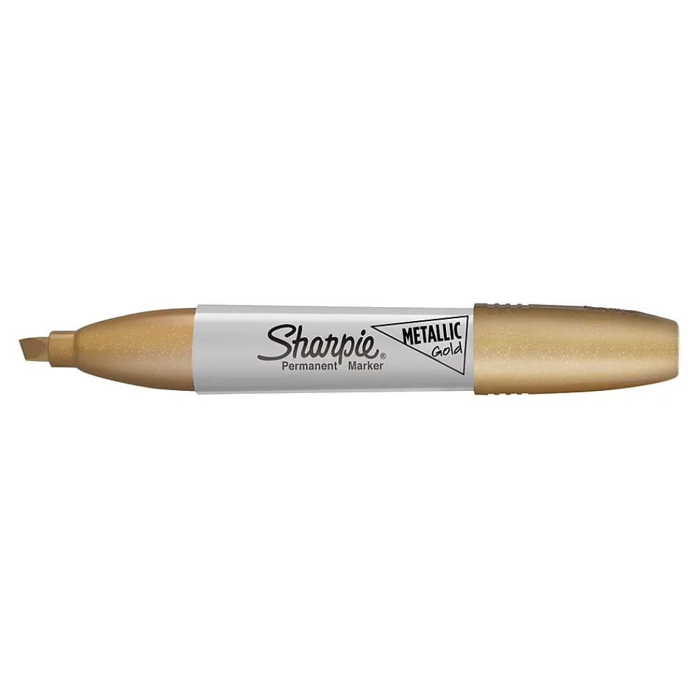 Get your shine on with Sharpie Metallic permanent markers. With a versatile chisel tip, create fine lines and thick marks with major style. Stand out in a crowd by using these metallic permanent markers for hand-lettering, coloring, labeling, and crafting. Each permanent marker is made with specially formulated ink designed to be quick-drying and fade- and water-resistant. Every mark boldly stands out on light and dark surfaces, meaning they’re perfect for projects on a black background.
