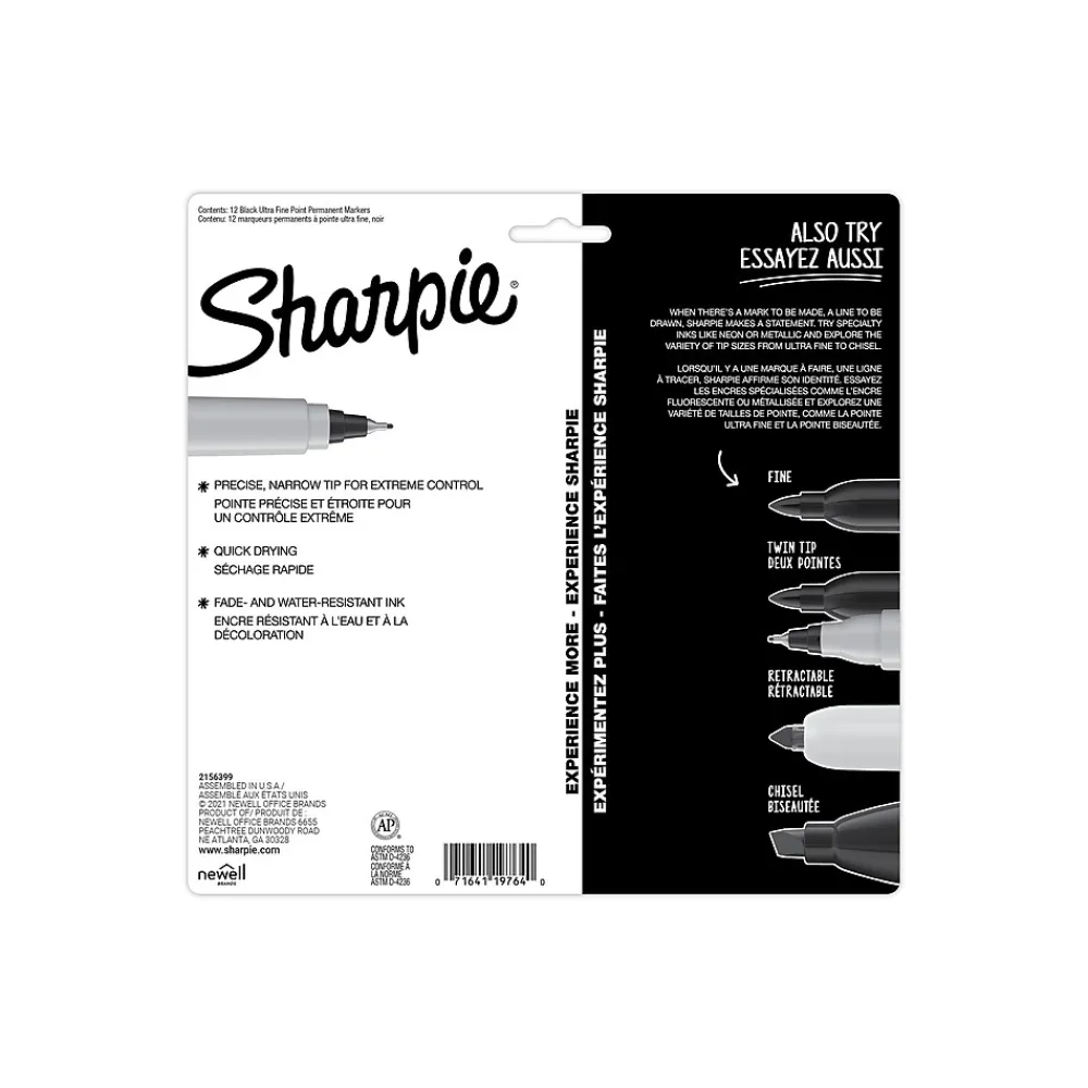 Bold to the maximum, permanent to the core, and offering the ultimate in precision, the Sharpie ultrafine-point permanent marker inspires you to make your point. Made to write practically everywhere, this vivid Sharpie marker eliminates dull and boring. The original permanent marker, Sharpie has an iconic ink that dries quickly and resists both water and fading. While pale imitations wither away, the Sharpie marker makes creations that endure. Featuring a precise narrowed tip for extreme control, this Sharpie ultrafine-point permanent marker inspires you to tell your whole story.