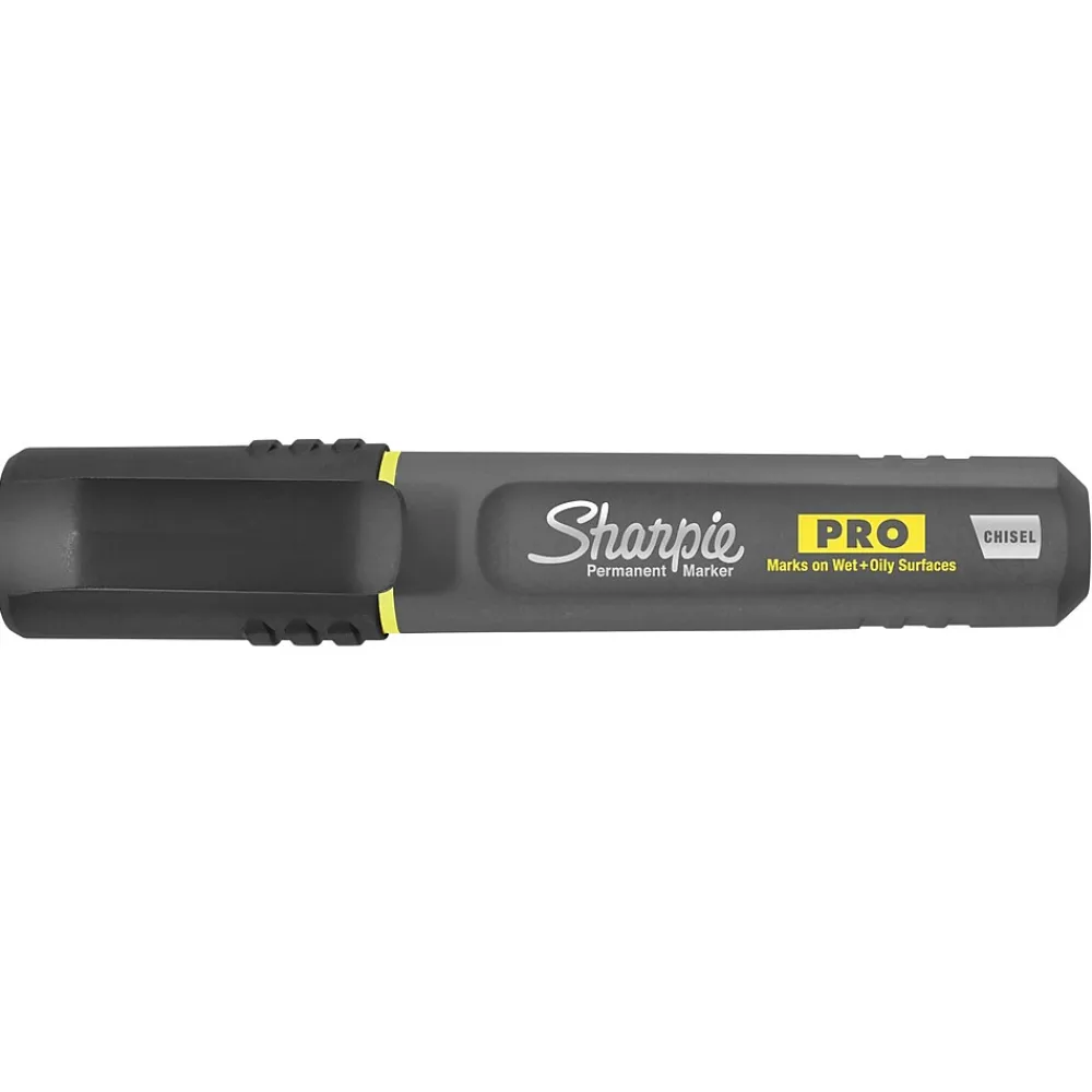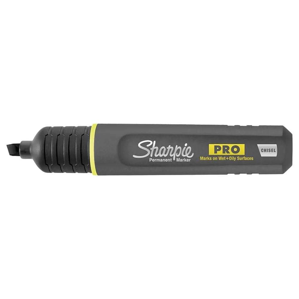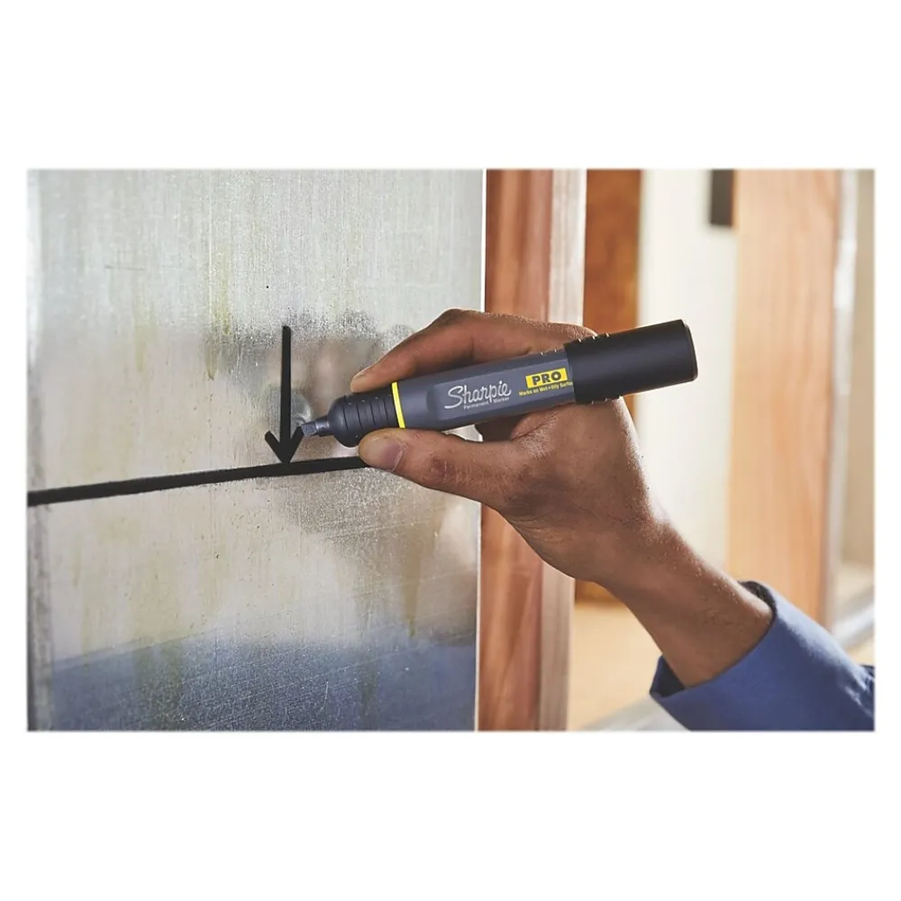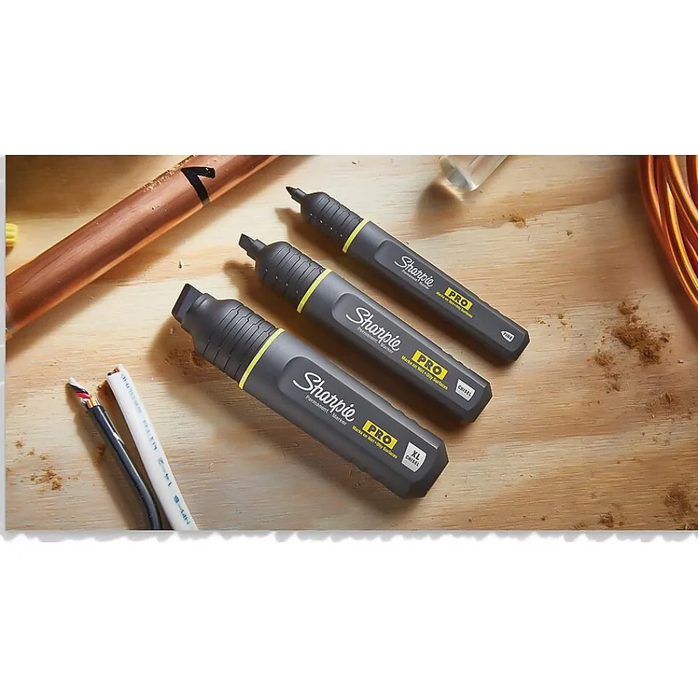 With permanent ink designed to mark on wet and oily surfaces, Sharpie PRO Permanent Markers are built jobsite-tough. The newly redesigned permanent markers better fit the needs of tradesmen with features like a medium-size anti-roll barrel shape, cap clip, lanyard loop, and more. The pack of 3 professional markers in black, blue, and red with a chisel tip will get the job done.