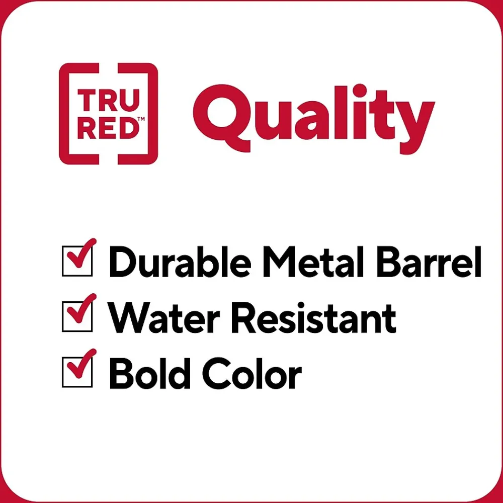 Grab these chisel-tip assorted permanent markers with an XL tank size and ink reservoir to conquer large projects with ease. Built with a durable metal barrel, these markers can withstand the stresses of any office or classroom. The quick-dry ink creates bold, smudge-free strokes for a variety of tasks. With this TRU RED 4-pack, you can leave your mark anywhere or have extras on hand when inspiration strikes.