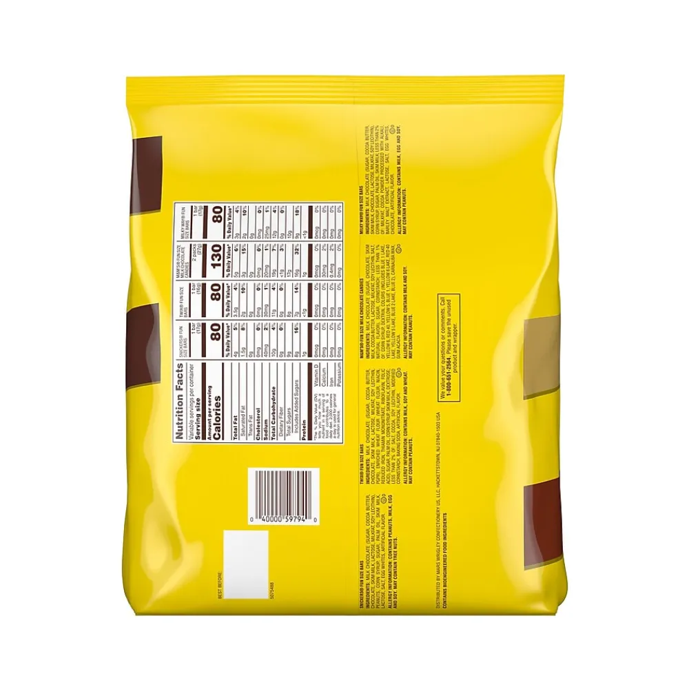- Includes M&M’s Milk Chocolate fun-size candy, Snickers Original chocolate bars, Twix fun-size chocolate bars, and Milky Way fun-size chocolate bars