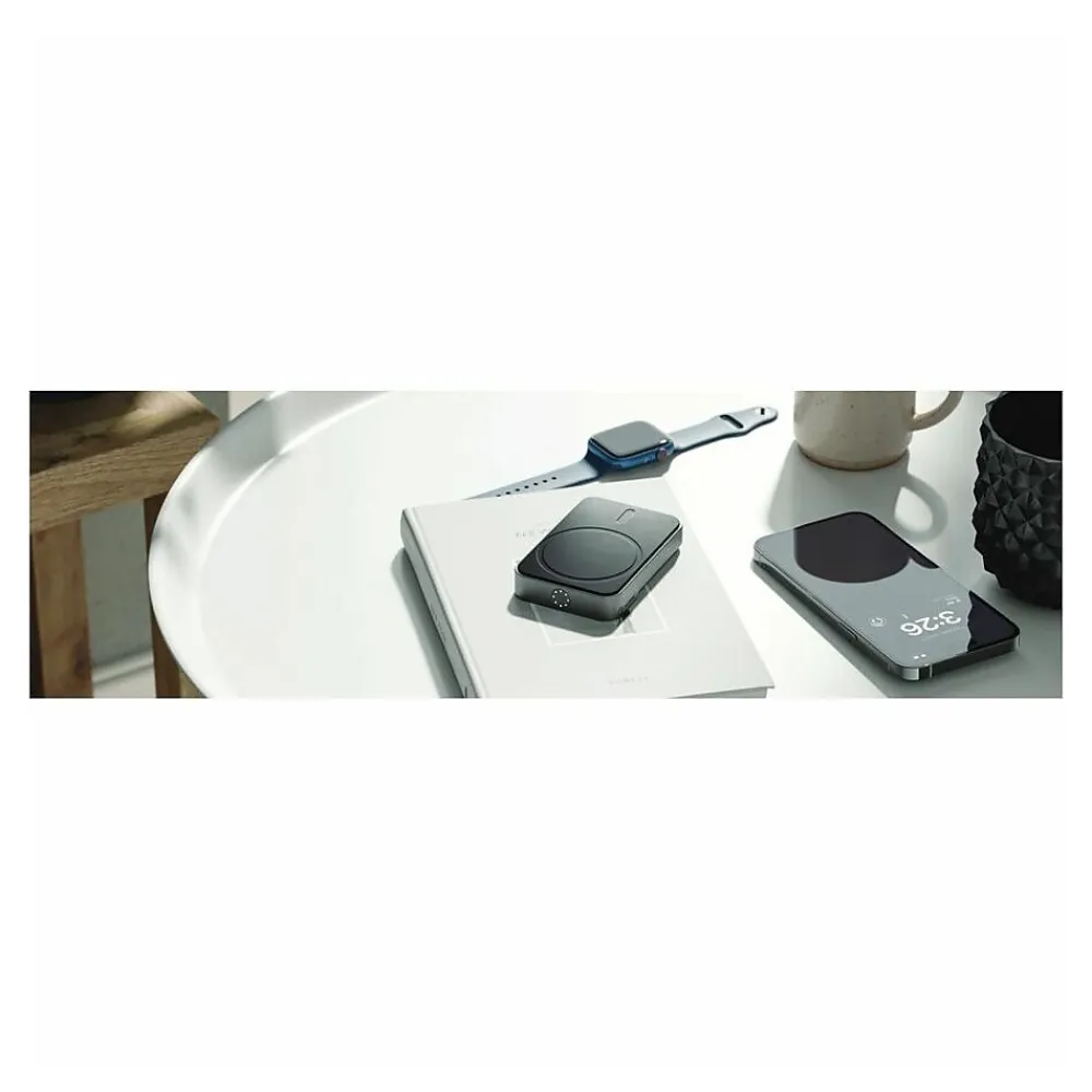 The magnetic power bank’s generous 5,000 mAh battery has enough juice to recharge your phone, earbuds and smartwatch from 0 to 100%.