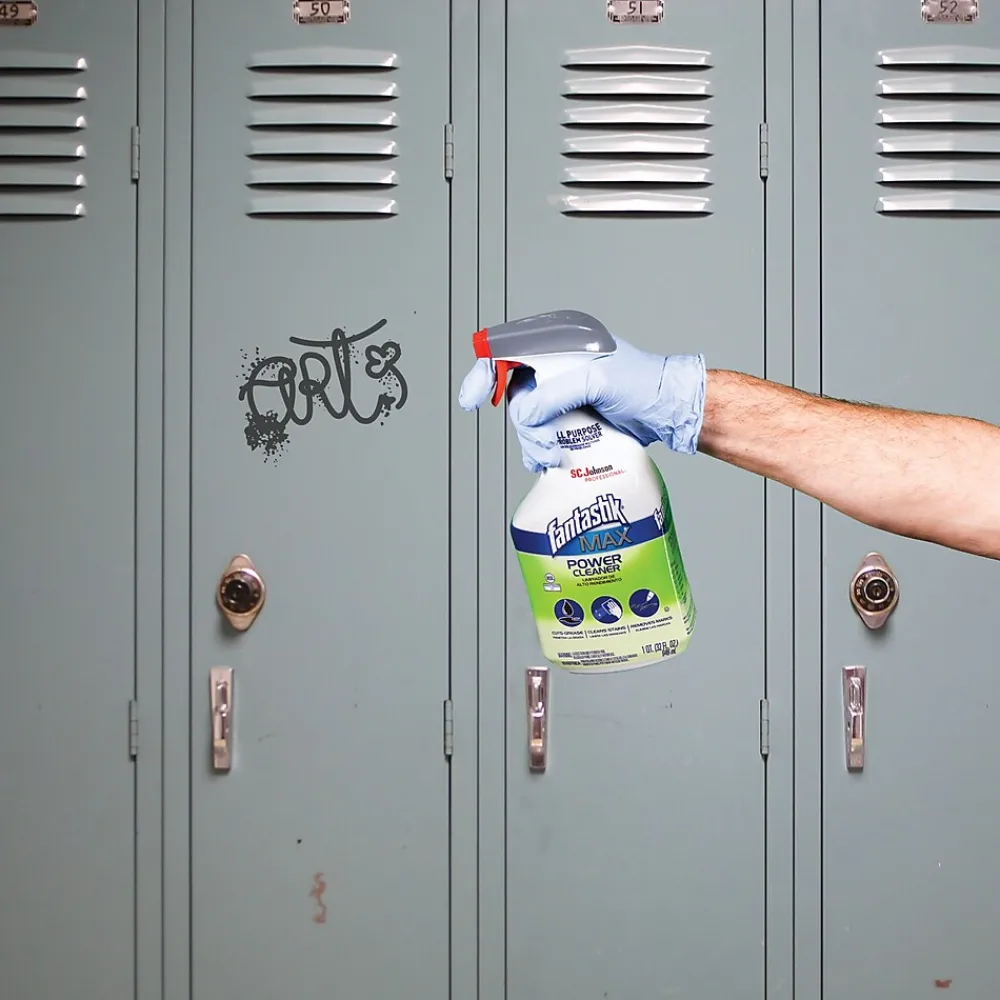 The Fantastik Max Power cleaner is an all-purpose problem solver that is specially formulated to be used indoors and outdoors to remove grease, crayon or marker, adhesive stickers, and even heel marks.