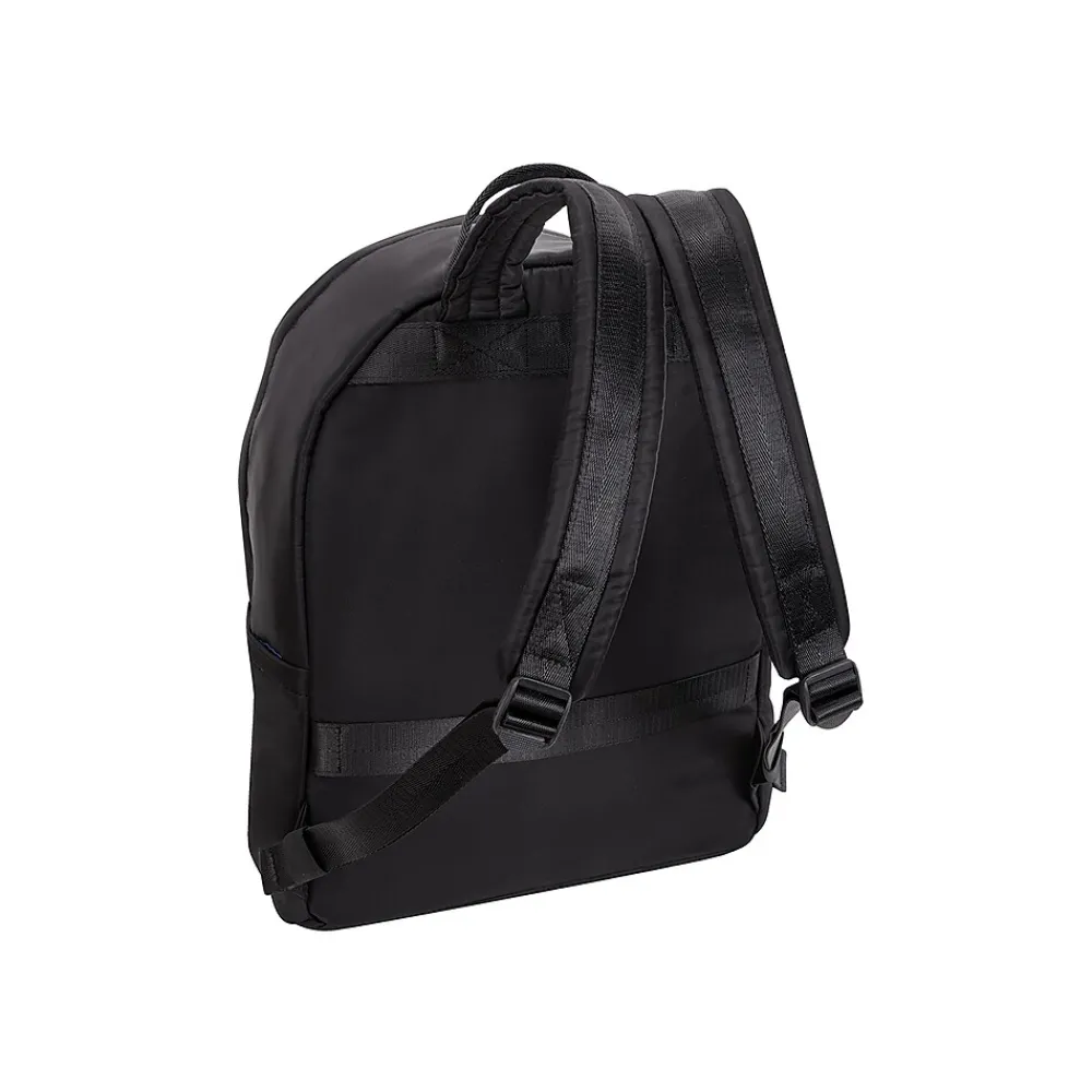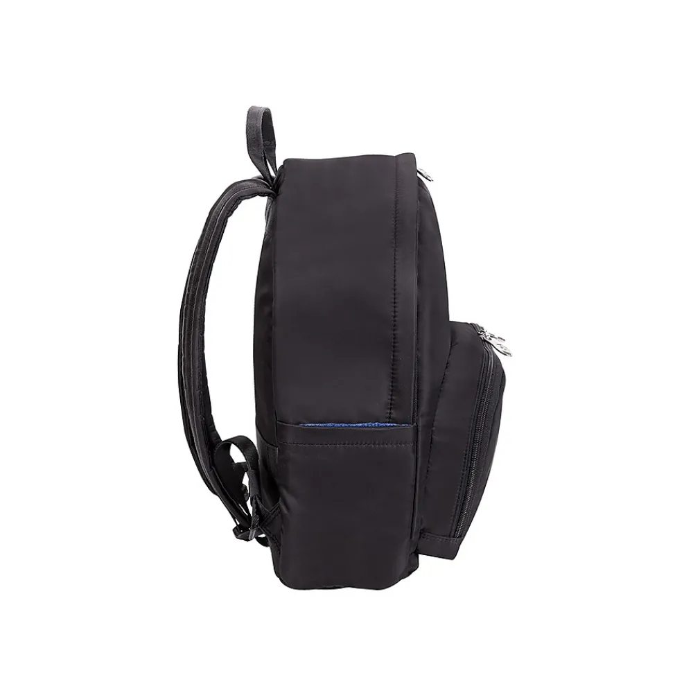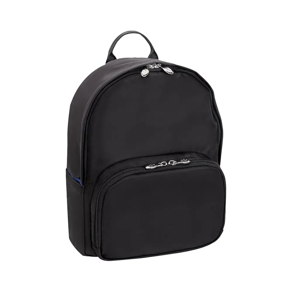 The slim design assists in the quick and on-the-go life. Pack all your essentials including a laptop in the built-in padded pocket within the silver double zipper main compartment. Use the three exterior pockets for quick access to priorities and a double zipper pocket option for added security. The back exterior has a slim strap to secure onto a rolling case. The shoulder straps are adjustable and padded for comfort featuring an elastic stay-in-place holder. An easy-travel nylon top handle finishes this McKlein backpack for the quick on-the-go life.