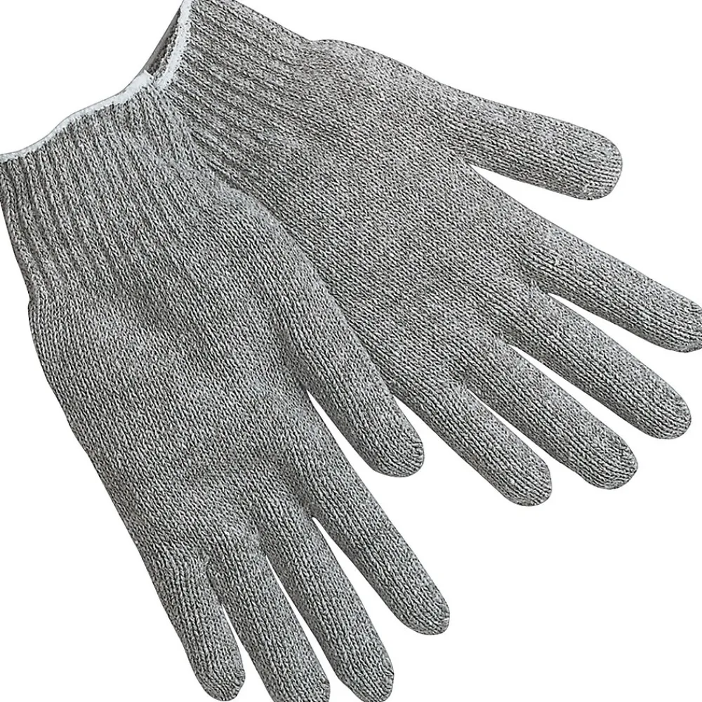 Memphis Gloves® Large string knit gloves in grey color are made of cotton/polyester material with hemmed cuff for durability. Gloves come with reversible pattern and provide comfort as well as warmth, sold as 12 pairs per case.