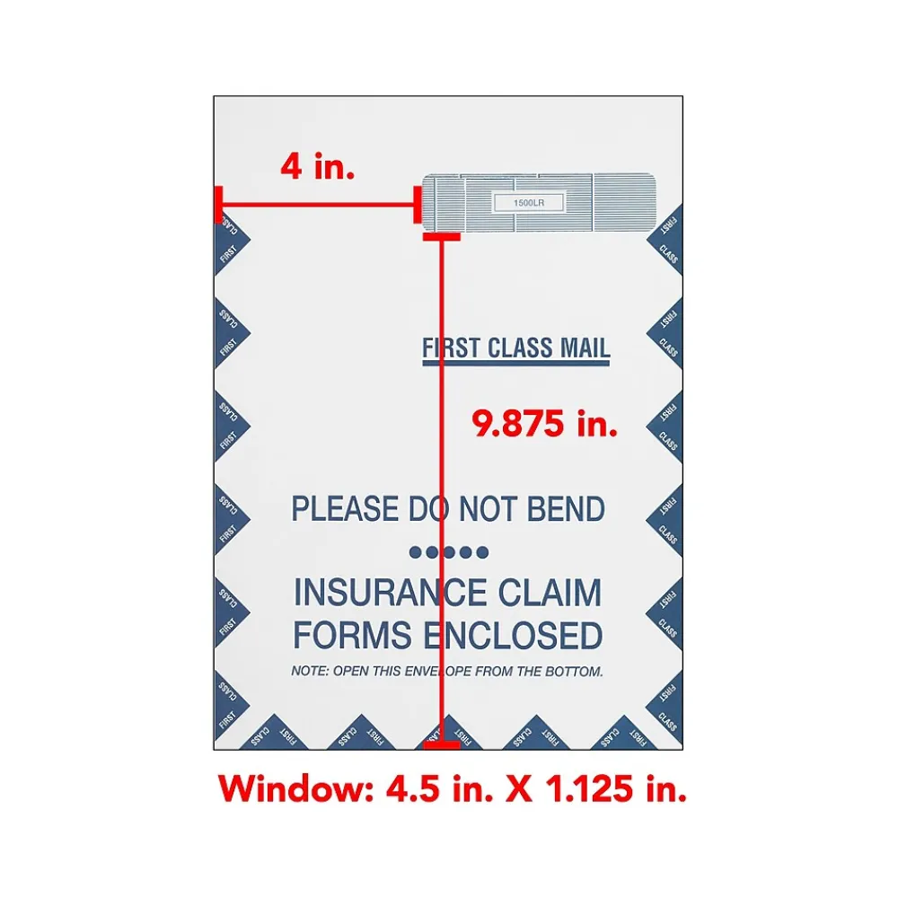 The ComplyRight CMS-1500 jumbo right-window envelope prevents processing delays by allowing the sender to mail the forms without folding them.