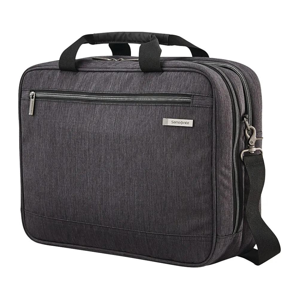 The Samsonite Modern Utility collection is a lifestyle business assortment designed to fit a more casual lifestyle and is your go-to business accessory. It features thoughtful organization for all your tech needs while providing a relaxed yet sophisticated look for your everyday needs. Sleek and compact, the Samsonite Modern Utility briefcase is perfect for business and beyond. With a fully padded main compartment, additional organization in the front pocket, and detachable strap, this briefcase is ready to go wherever you do.