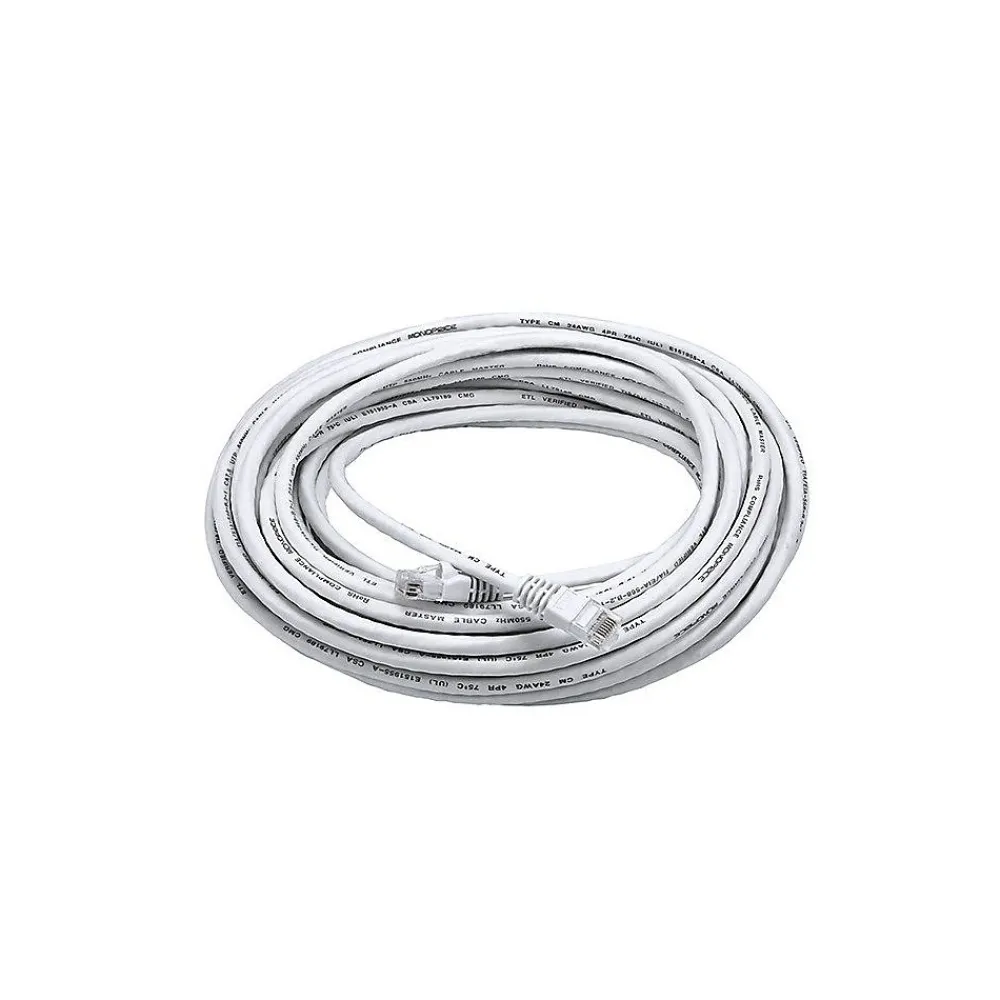 Monoprice® 50′ Cat6 UTP Ethernet network cable with a data transfer speed of 550 MHz has 50 micrometer gold plated contacts for enhanced conductivity. Cable in white color has snagless strain relief boots and offers high performance.