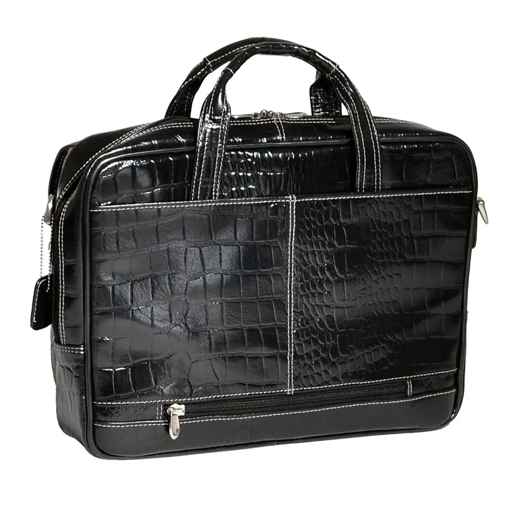 MONTEROSSO, SETTEMBRE, Embossed Crocco Leather, Medium Ladies Laptop Briefcase, Black (35525)<Siamod Online