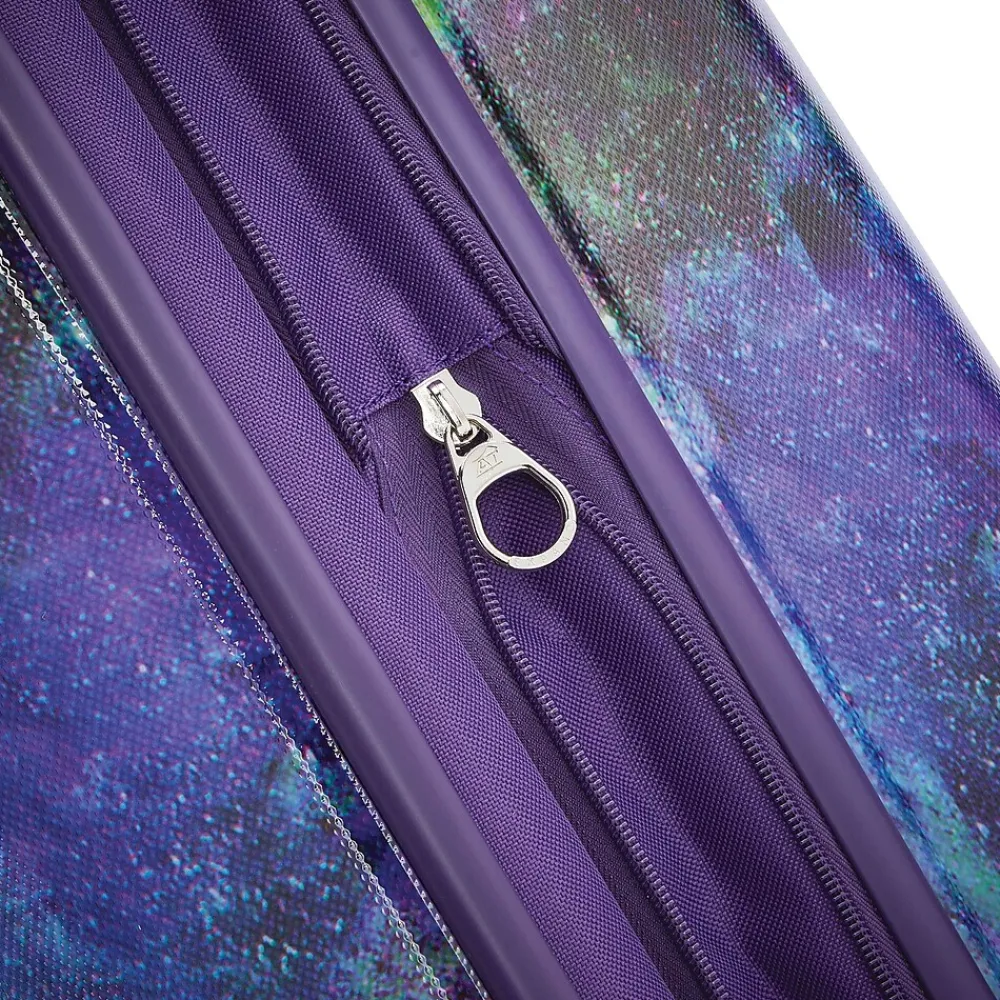 - Shiny hardside ABS/polycarbonate suitcase with a multicolor cosmos pattern
