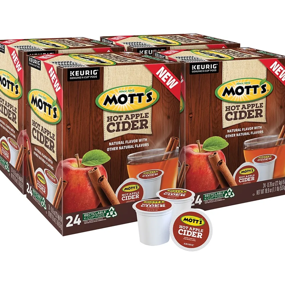 Enjoy Mott’s hot apple cider pods with the real apple taste you crave. They contain no artificial flavors, no colors from artificial sources, and no artificial sweeteners.