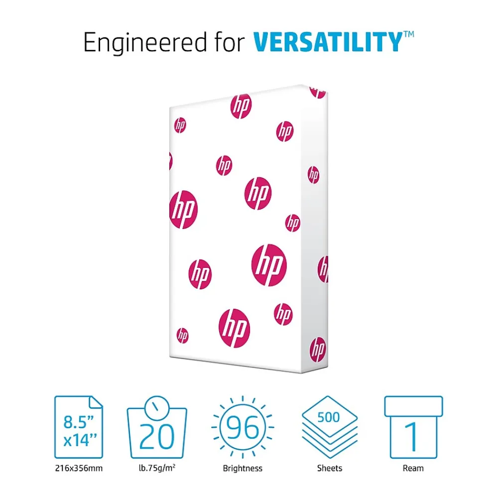 Bring a bold, professional look to your most important paperwork with this HP multipurpose paper. The legal-size sheets are ideal for everything from credit and loan applications to contracts, and the extra-bright white finish lets both color and monochrome inks stand out on each sheet. Formatted to resist smearing, this HP multipurpose paper delivers crisp, legible results every time you hit the print button.
