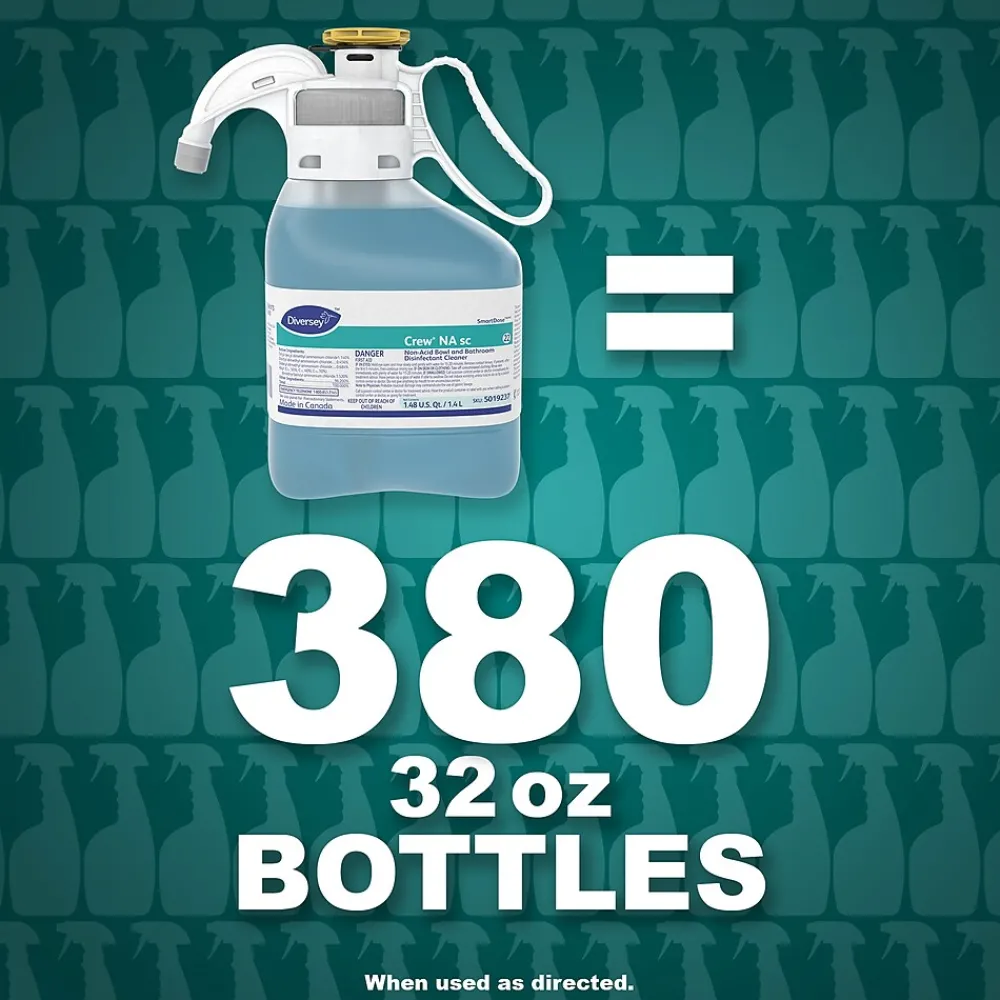 Clean and deodorize toilets, urinals, sinks, faucets, countertops, and walls with this floral-scented powerful cleanser. Diversey Crew cleaner is EPA-certified to kill common microorganisms including HIV-1, salmonella, and E. Coli to keep you healthy, and it comes in a SmartDose bottle that premeasures the proper amount, saving you money and preventing waste.