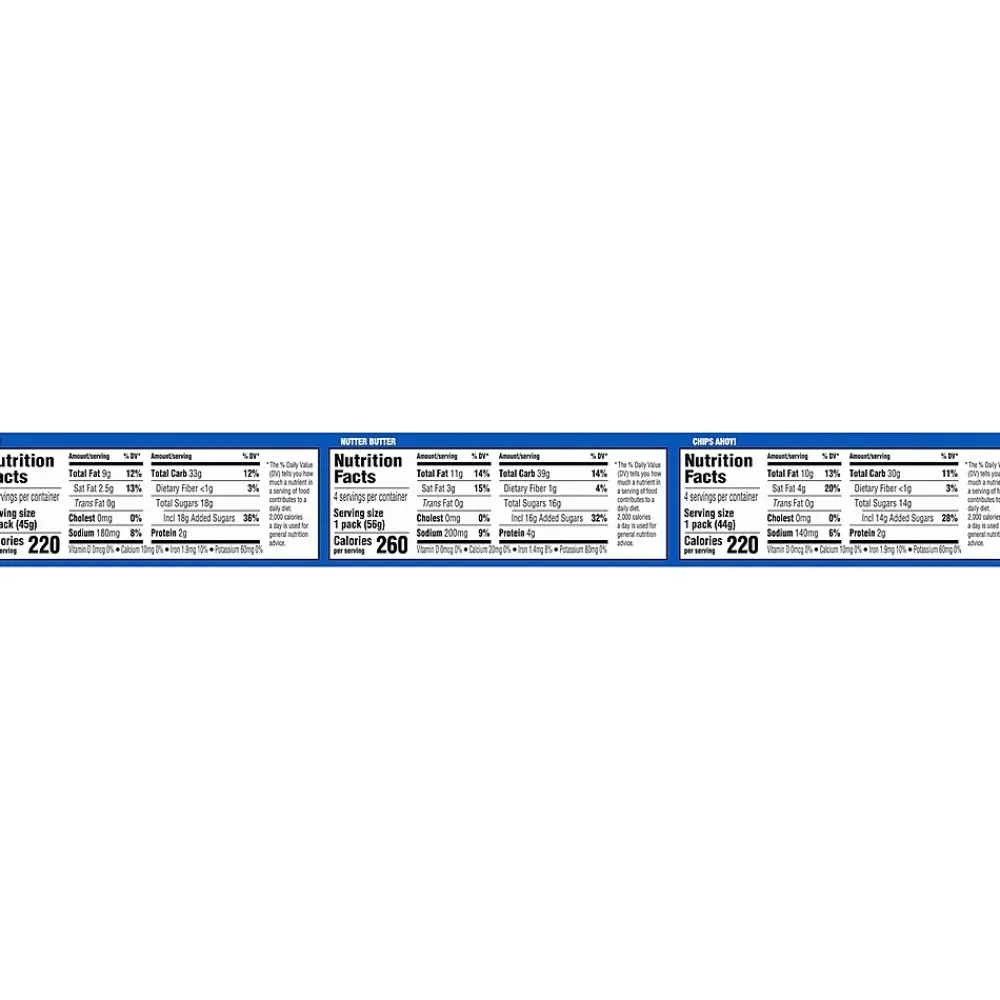 - Four bags of each flavor per pack (OREO, Nutter Butter, and CHIPS AHOY!); serving size: one bag (four cookies)