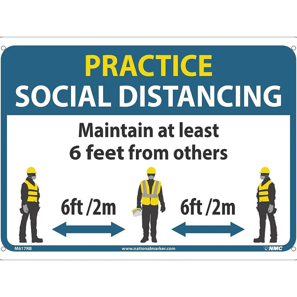 National Marker has led the response in offering hundreds of pandemic-related identification products. Use this wall sign to remind employees and visitors to help mitigate the spread of harmful germs by taking the easiest of steps, such as maintaining the safe distance from one another. This durable sign is made of rigid plastic and is perfect for long-lasting indoor or outdoor use. The sign is supplied with radius corners and predrilled mounting holes.