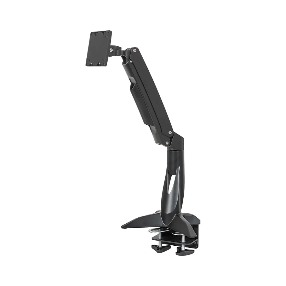 Amer Mounts’ arm is a monitor table stand designed with the convenient stretch function meet the current needs of display mounting and storage. The material of this arm, made out of rugged aluminum alloy, can support a 26.46-41.89 lbs. flat monitor and 16.53-31.97 lbs. curved/ultrawide monitor (curvature: ≥1000R). With multi-angle adjustment, left and right angle can be adjusted by 180 degrees, tilting angle +/-20 degrees and up and down adjustable function of the arm. The VESA quick release function allows for quick removal and connection of displays.