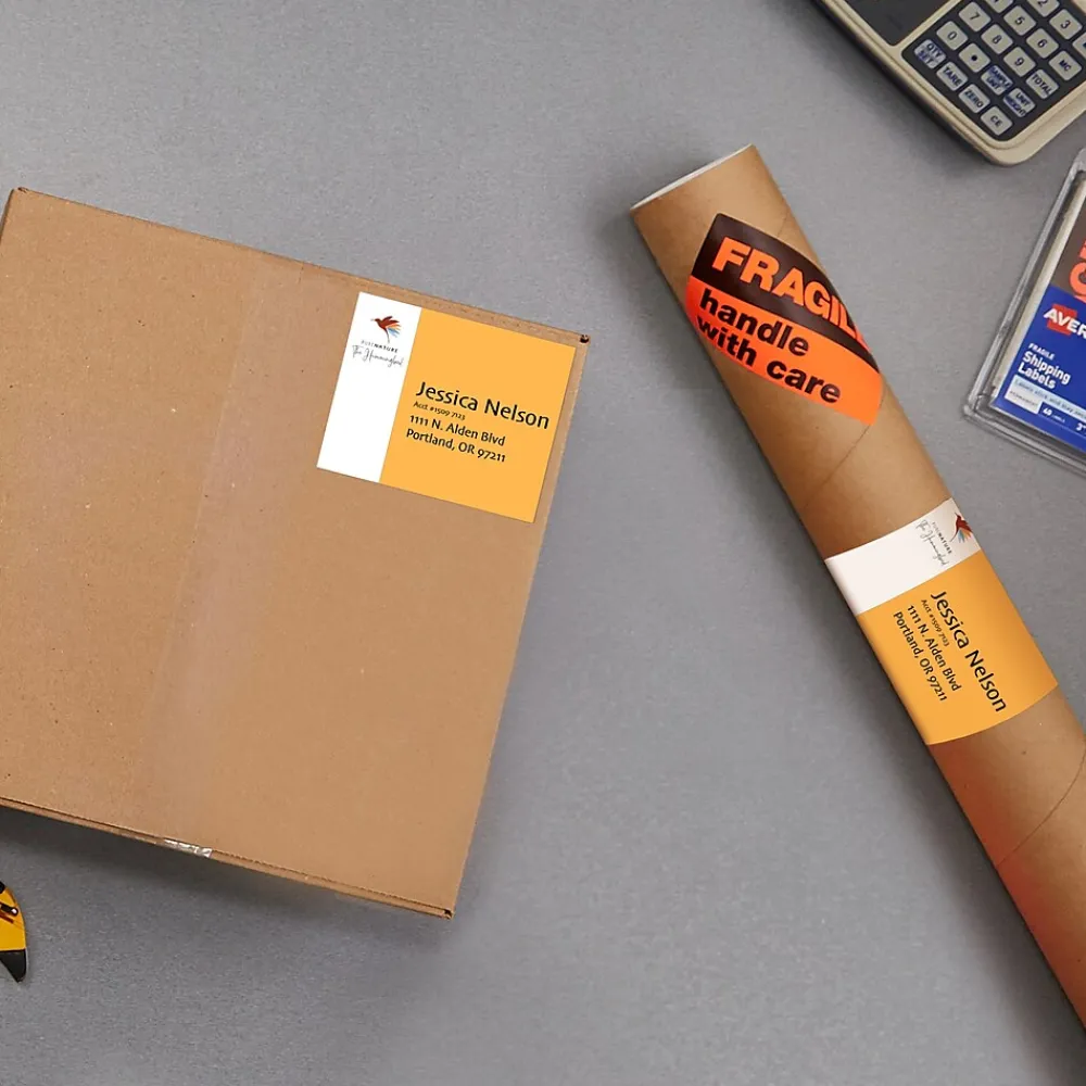 Create eye-capturing, printable labels for your mail or project withAvery Shipping Labels for Color Laser Printers. Create beautiful customizable sticker labels with full-bleed backgrounds as the print-to-the-edge feature allows you to print vivid color and sharp text beyond the cutting edge. Now you can create fully customizable labels without any margin, borders, or excess white space. To ensure a reliable feed through your printer, Avery Sure Feed technology helps prevent misalignments and paper jams. Easily customize the blank labels with the thousands of free designs, templates, and mail merge tools found at avery.com/template. Use the quarter-page rectangle labels to create box labels, shipping labels, party favor labels, large envelope labels, and more. The personal shipping labels are guaranteed to stick and stay with the permanent adhesive feature. Sized at 3-3/4″ x 4-3/4″, the pack includes 100 labels. For the environmentally conscious advocate, the paper is FSC certified. The labels are optimized for color laser printers.