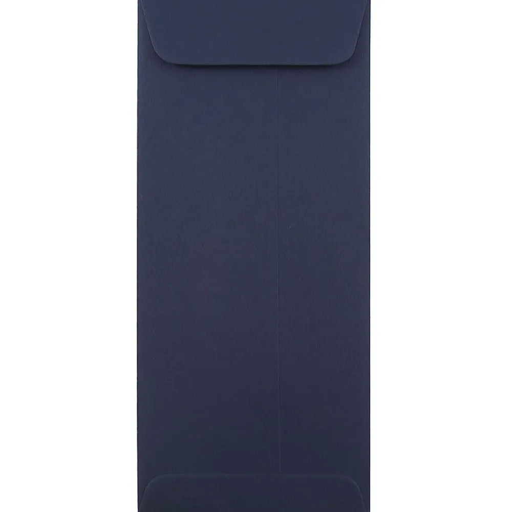 JAM Paper Navy Blue #10 Policy Envelopes are 28lb, high quality paper and measure a convenient 4 1/8 x 9 1/2 inches in size. Each of these envelopes opens on the short end and has a straight flap with a reliable gum closure. These envelopes feature a deep and dark, navy blue color that gives that a casual yet refined appearance that makes them equally great for personal and professional mailing purposes! These envelopes are great for checks, cash, receipts, sales slips, invoices, tickets, folded documents and more! Use these envelopes in your office, in your home, or anywhere you need to store or send important papers, and to make an impression on mail recipients! This pack contains a total of 25 envelopes.