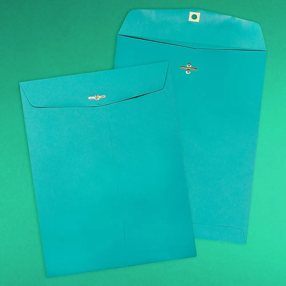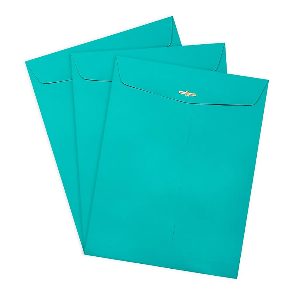 JAM Paper sea blue 9 x 12 open end catalog with clasp closure envelopes are made out of high quality, smooth, 30% recycled, 24lb paper. This pack contains 100 envelopes. At 9 x 12 inches in size, these envelopes are perfect for enclosing standard sized sheets of paper without folding or creating creases! Each one features a bright shade of sea blue! To keep the contents inside of them in place while in transport, these envelopes have commercial style flaps and reliable, easy-to-use metal clasp closure. Each one also has an optional-use gum closure for additional reinforcement. Use these blue envelopes to mail letters, promotional materials, and more!