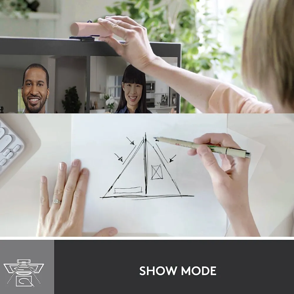 - Show Mode: Present your work or other objects on your desk with Show Mode, which lets you tilt the web camera up or down with one hand