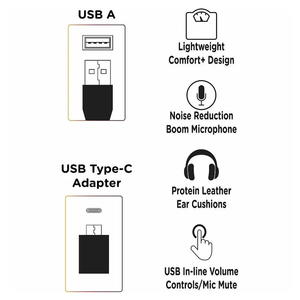 - USB In-line Volume Controls/Mic Mute allows you to adjust the volume up or down, as well as mute the microphone when needed. Comes complete with a USB-A Connector and a USB Type-C Adapter, so it can connect to your PC/Mac with Plug and Play ease. No Driver required.