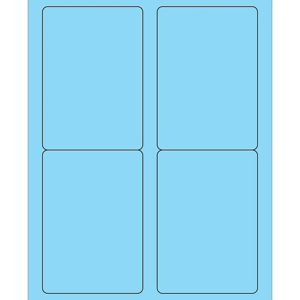 3 1/2″ x 5″ Fluorescent Pastel Blue Rectangle Laser Labels. Use to create your own product or mailing labels. Labels work with both Laser and ink jet printers. Permanent adhesive. Labels stick to a variety of smooth surfaces including paper, corrugated, plastic, wood, glass and metal.