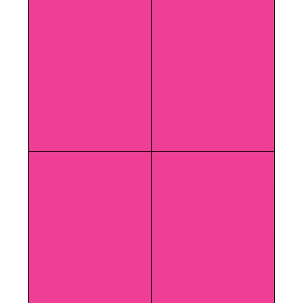 4 1/4″ x 5 1/2″ Fluorescent Pink Rectangle Laser Labels. Use to create your own product or mailing labels. Labels work with both Laser and ink jet printers. Permanent adhesive. Labels stick to a variety of smooth surfaces including paper, corrugated, plastic, wood, glass and metal.