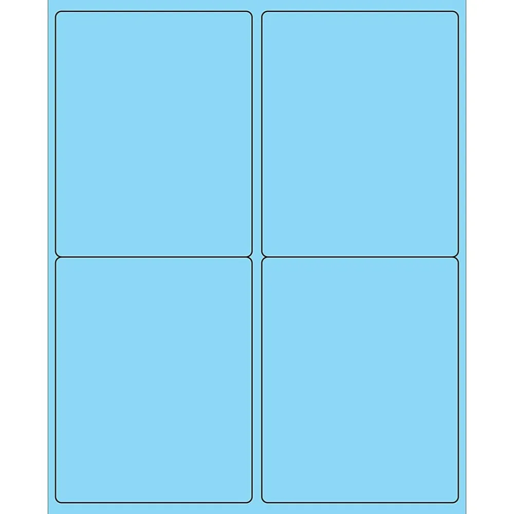 4″ x 5″ Fluorescent Pastel Blue Rectangle Laser Labels. Use to create your own product or mailing labels. Labels work with both Laser and ink jet printers. Permanent adhesive. Labels stick to a variety of smooth surfaces including paper, corrugated, plastic, wood, glass and metal.
