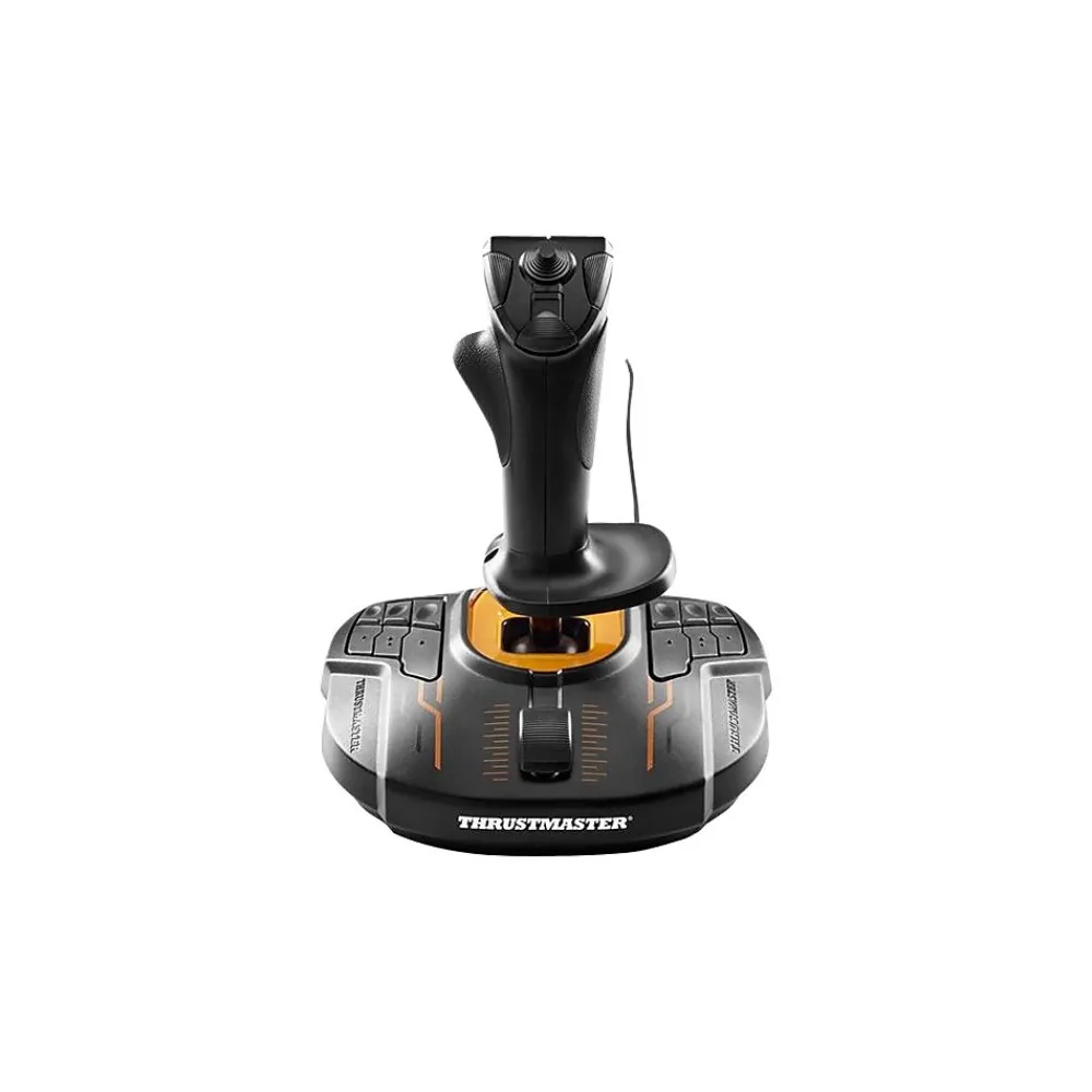 In order to guarantee exclusive high-precision performance, pitch and roll on the T.16000M FCS flight stick employ H.E.A.R.T HallEffect AccuRate Technology for 16-bit resolution – the same pinpoint accuracy delivered by the extremely high-end HOTAS Warthog joystick, allowing gamers to engage their enemies with surgical precision. The helical spring inside the stick provides firm, linear and smooth tension. The T.16000M FCS features 4 independent axes, including twist rudder (controlled by rotating the stick), 16 action buttons with braille-style physical button identification, one 8-way Point of View (PoV) hat switch and an ergonomic trigger. Its striking orange accents and backlighting bring gamers’ immersion to a whole advanced level. Thanks to its design and ergonomics, the T.16000M FSC HOTAS provides players with multiple recognizable features, allowing them to become more effective and accurate when in flight. This enhanced access to flight controls proves even more essential when players are fully immersed in the exceptional flight experience delivered by VR-compatible games. The T.16000M FCS HOTAS is the natural and intuitive way to sit in a cockpit with one’s hands on the throttle and stick.